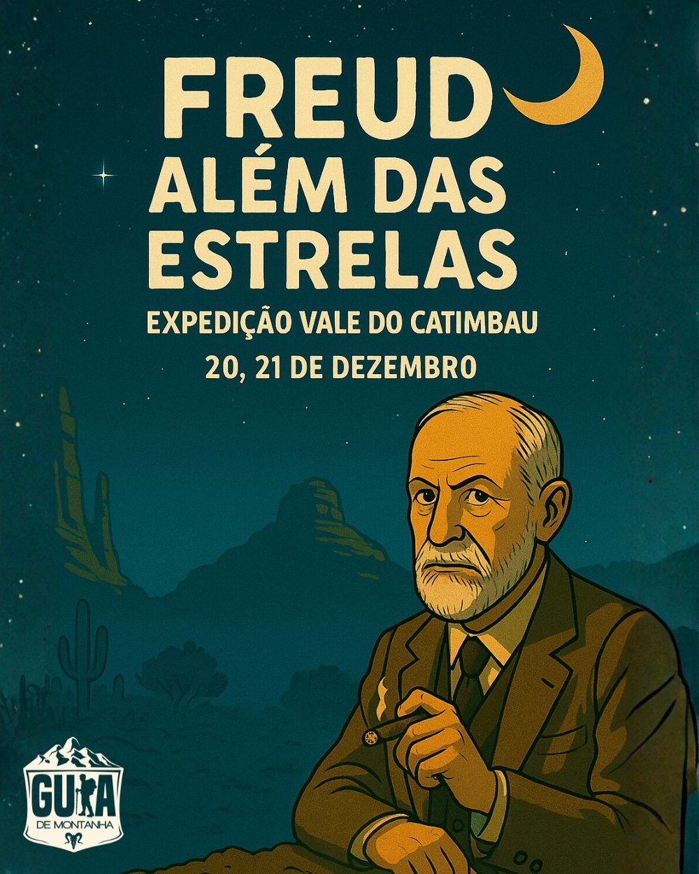 "Vale do Catimbau: O seu divã sob o céu do Sertão, nos dias 20 e 21 de Dezembro, caminhe por trilhas milenares e interprete seus sonhos sob um céu de milhões de estrelas, uma jornada de autodescoberta, onde as trilhas encontram as estrelas e o inconsciente é a bússola. Uma expedição para mentes curiosas, inspirada em Freud."